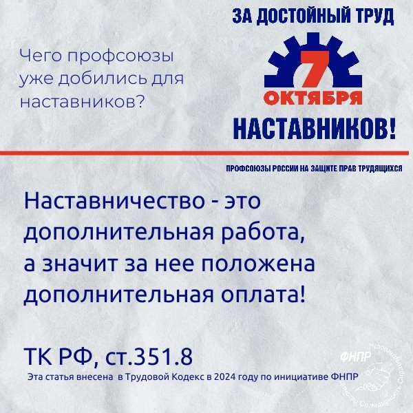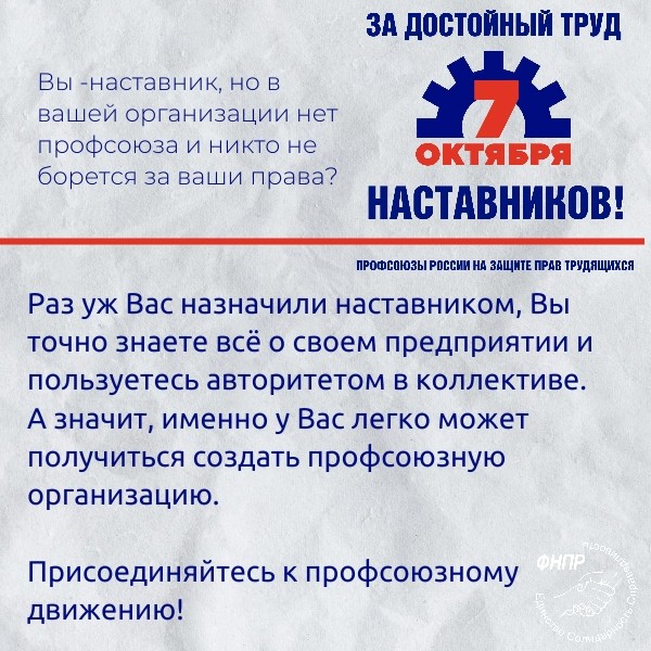 Всемирный день действий «За достойный труд!» под девизом «За достойный труд наставников!» – это не просто формальное мероприятие. Это возможность для каждого из нас задуматься о роли наставничества в своей профессиональной жизни, выразить благодарность своим наставникам и поддержать тех, кто сегодня делится своим опытом с молодым поколением.Тема выбрана не случайно. Кадровый голод испытывают не только общеобразовательные организации, а также организации дошкольного и дополнительного образования .Акция призвана привлечь внимание к важности наставничества в сфере труда.